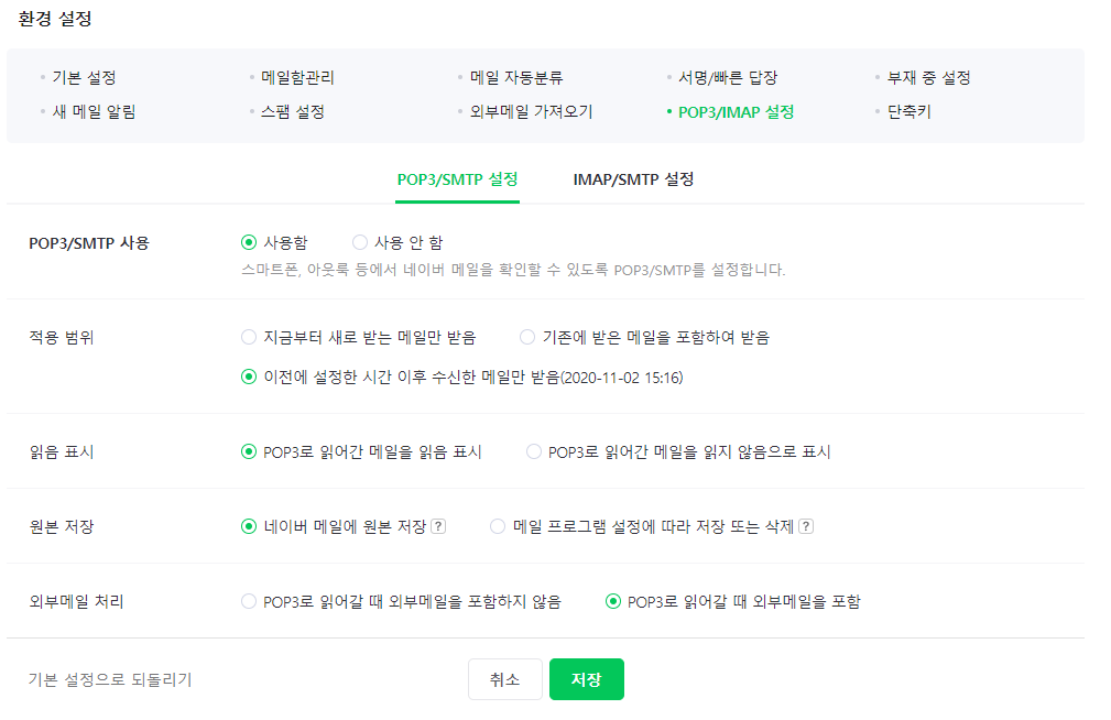 네이버 메일 설정